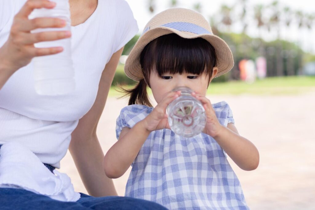こまめな水分補給を習慣化することも大切です。一度にたくさん飲むのではなく、少しずつ数回に分けて飲むのがポイントです。外遊びの前後はもちろん、室内で過ごしているときも油断せず、水分補給を促しましょう。